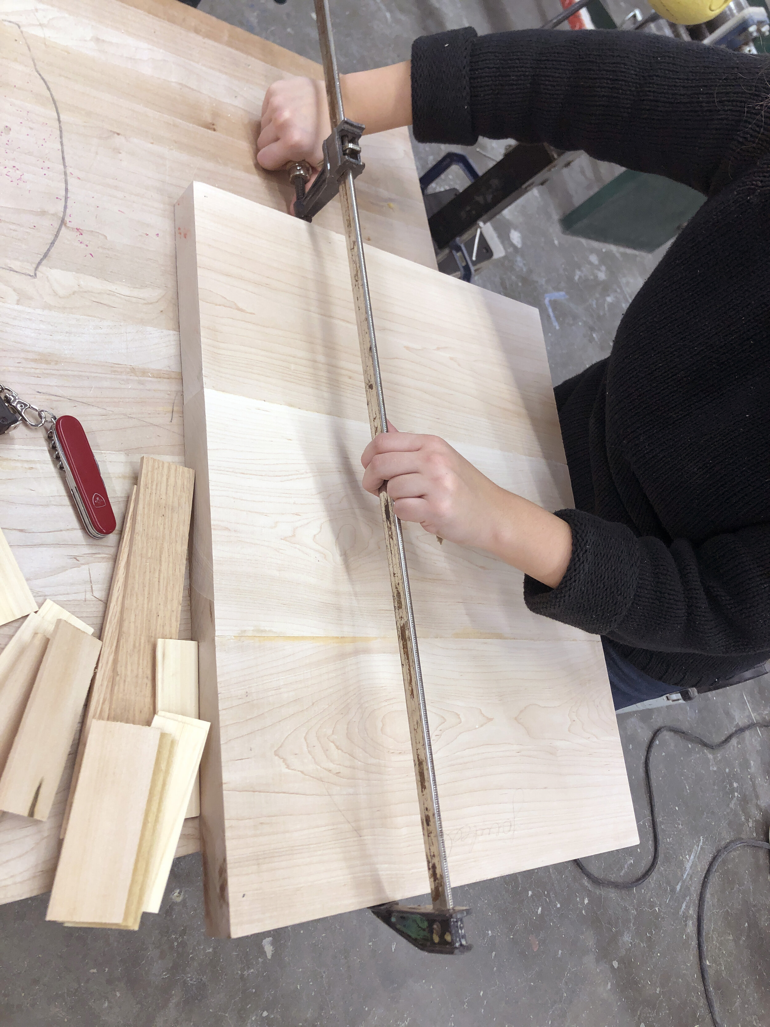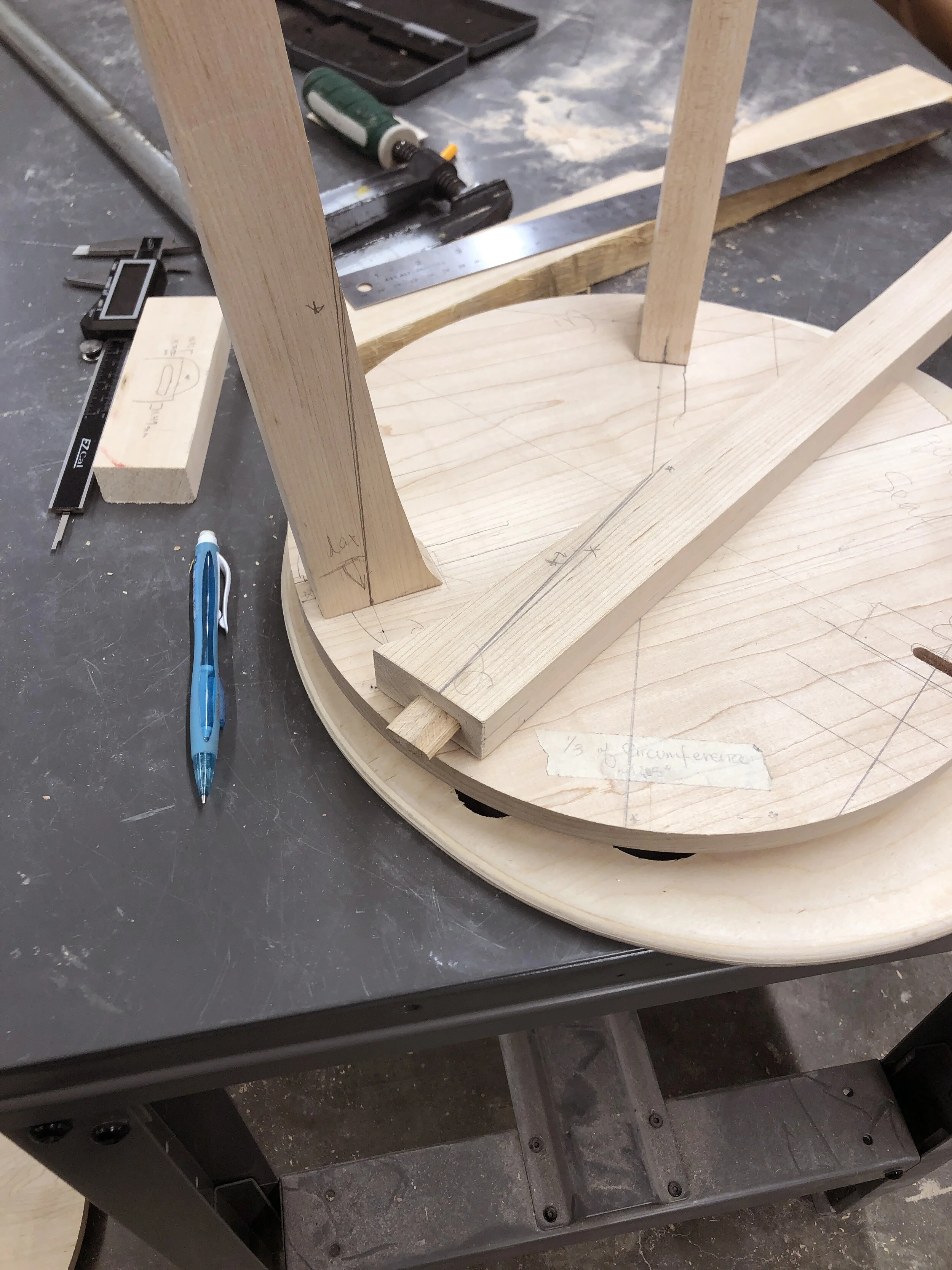 Hard maple chosen as the material for its machining qualities, with emphasis on vertical grain on legs for strength